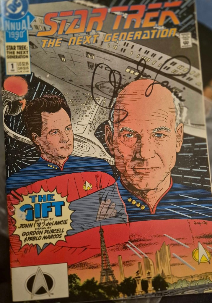 So this time when we met, I had an original copy and handed it to him to be signed. He cheekily asked should he write all over Patrick Stewart’s head so I said yeah.