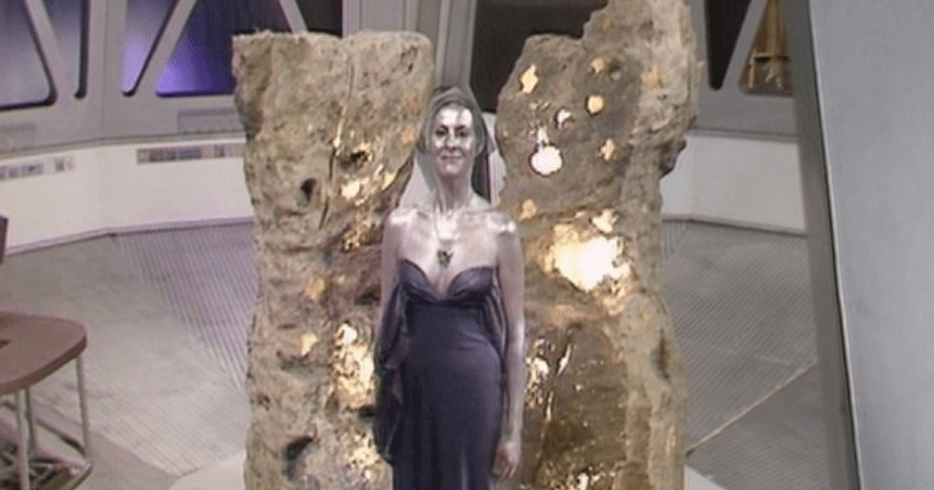 The Doctor uses the law against the Megara to call them as witnesses and detemine their original mission which was to judge Cessair of Diplos. In one last desperate attempt, the Doctor grabs Fay as they try to electrocute him. Under law, the Megara can read someone’s mind in certain circumstances such as a state of unconsciousness. They read her mind and Cessair is revealed as the murderer, the thief and removing Ogri from their natural habitat illegally. Fay is condemned to eternal imprisonment and is made into living stone, becoming part of the stone circle.